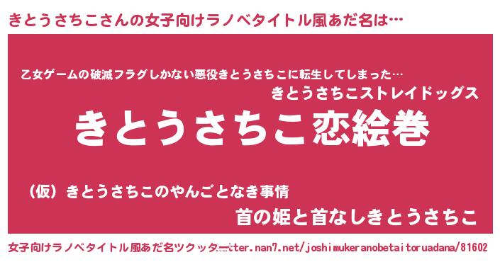| 男性向けラノベタイトル風あだ名 | 『おまえをオタクにしてやるから、俺をきとうさちこにしてくれ! 』 |