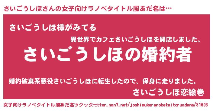 | 意味不明あだ名 | 『さいごうしほフォーエバー』 |