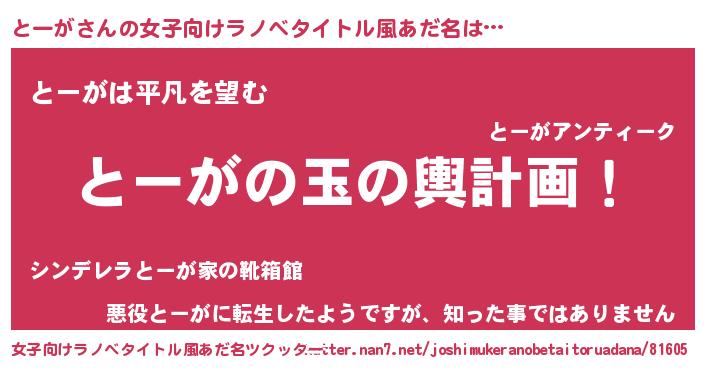 | 胡散臭い通販商品みたいなあだ名 | 『伝統あるサプリメント…その名も「とーが」』 |