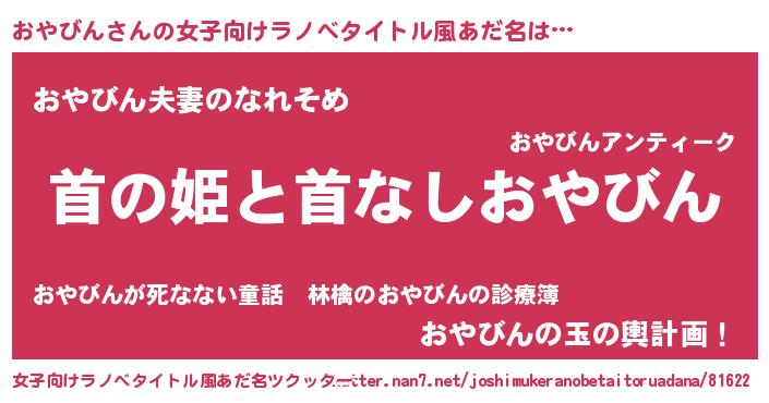 | ヘコむあだ名 | 『おやにゅー』『おやぷりん』 |