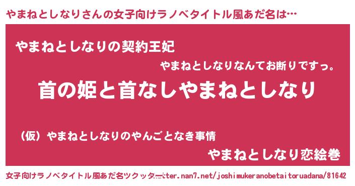 | 胡散臭い通販商品みたいなあだ名 | 『絶対に幸福をもたらす招き猫…その名も「やまねとしなり」』 |