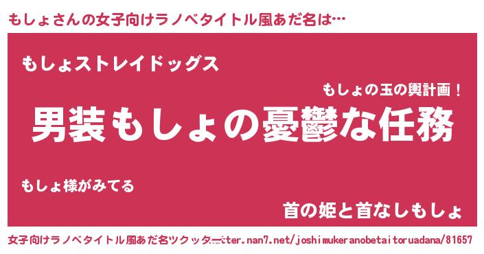| 胡散臭い通販商品みたいなあだ名 | 『芸能人もオススメする高麗人参…その名も「もしょ」』 |