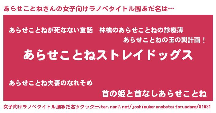 | 意味不明あだ名 | 『自称あらせことね』 |