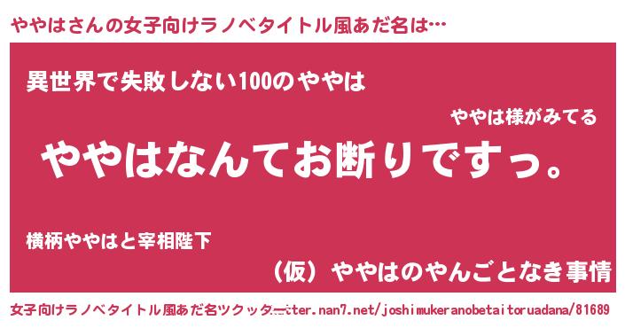 | 意味不明あだ名 | 『自称ややは』『永久保存ややは』 |