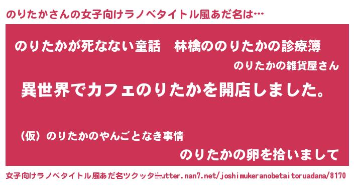 | 男性向けラノベタイトル風あだ名 | 『誰もが恐れるあののりたかが、ぼくの専属メイドになるようです。』 |