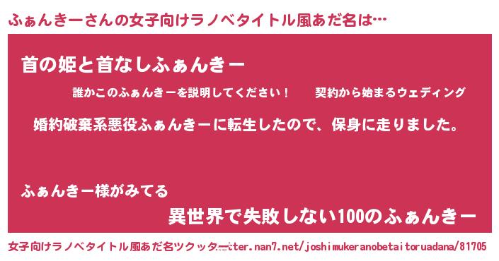 | 胡散臭い通販商品みたいなあだ名 | 『来世でも幸せになれる水素水…その名も「ふぁんきー」』 |