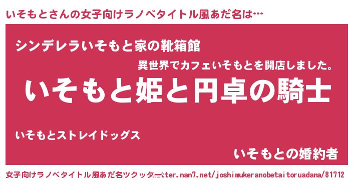 | 男性向けラノベタイトル風あだ名 | 『いそもとの憂鬱』 |