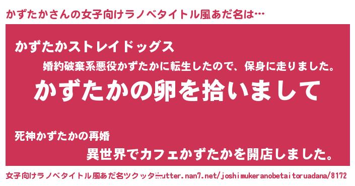 | 男性向けラノベタイトル風あだ名 | 『かずたかの嫁は女の子じゃないと思った?』 |