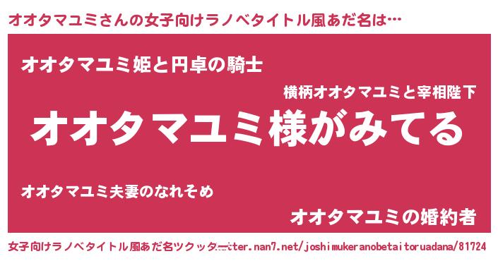 | 男性向けラノベタイトル風あだ名 | 『オオタマユミの嫁は女の子じゃないと思った?』 |