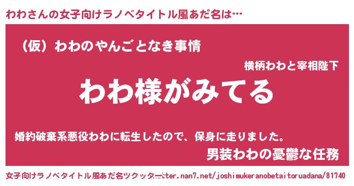ヘコむあだ名 | 『わわっちょ』『わわにゅー』 |