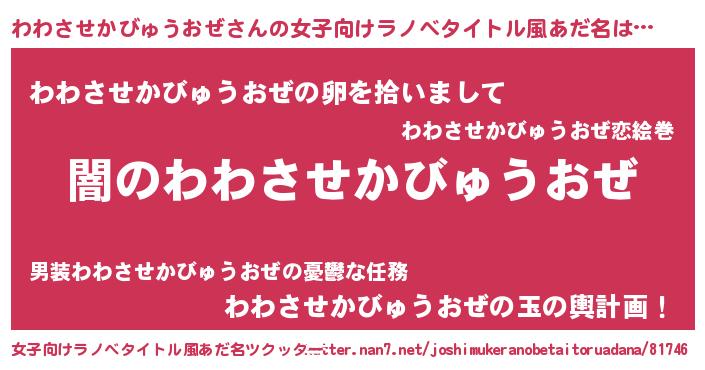 | 胡散臭い通販商品みたいなあだ名 | 『テレビで話題の高麗人参…その名も「わわさせかびゅうおぜ」』 |
