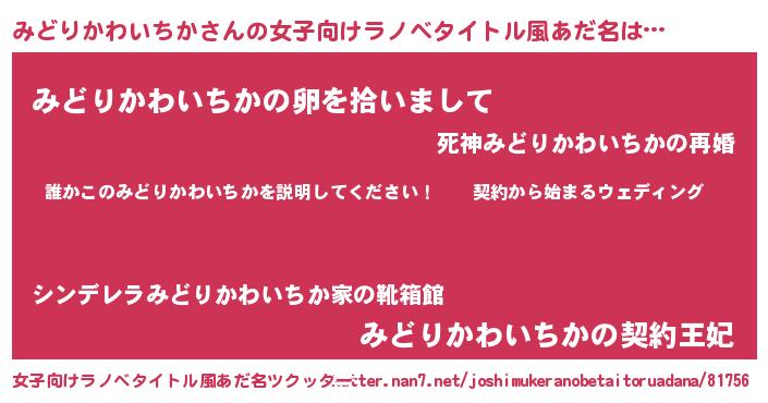 | 男性向けラノベタイトル風あだ名 | 『ミドリカワイチカアートオンライン』 |