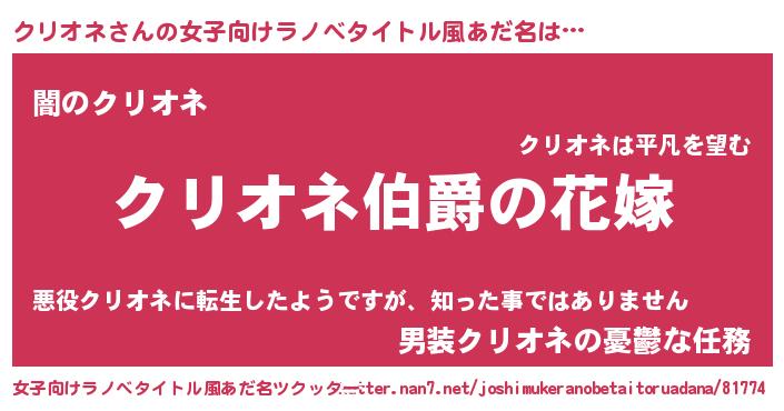 | ファンタジー風あだ名 | 『エターナルクリオネー』『ゼクリトゥ』 |