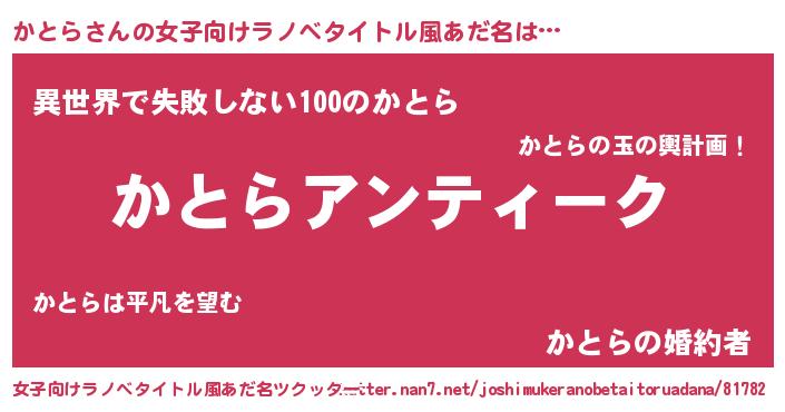 | 胡散臭い通販商品みたいなあだ名 | 『テレビで話題の高麗人参…その名も「かとら」』 |