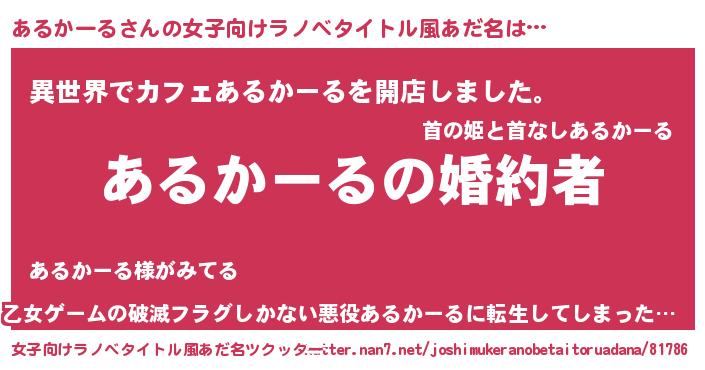 | ファンタジー風あだ名 | 『エターナルアルカールー』 |