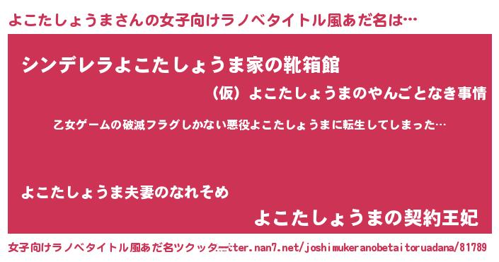 | 男性向けラノベタイトル風あだ名 | 『魔弾の王とよこたしょうま』 |