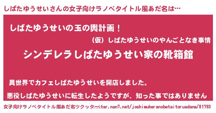 | ヒーロー風カッコイイあだ名 | 『仮面シバダー』『ネオシバタユウセイ』 |