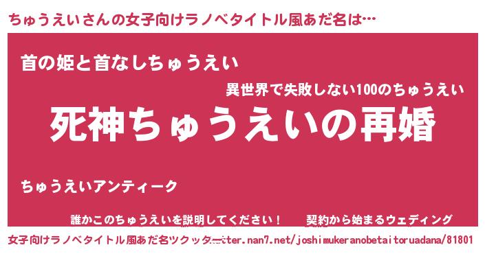 | 男性向けラノベタイトル風あだ名 | 『ノーゲーム・ノーチュウエイ』 |