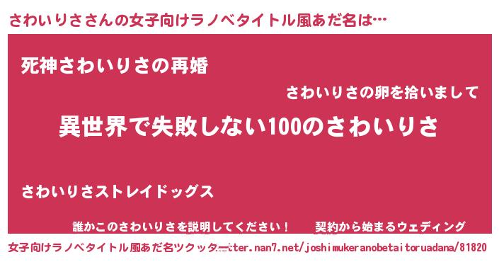 | 男性向けラノベタイトル風あだ名 | 『さわいりさという概念が存在しない退屈な世界 』 |