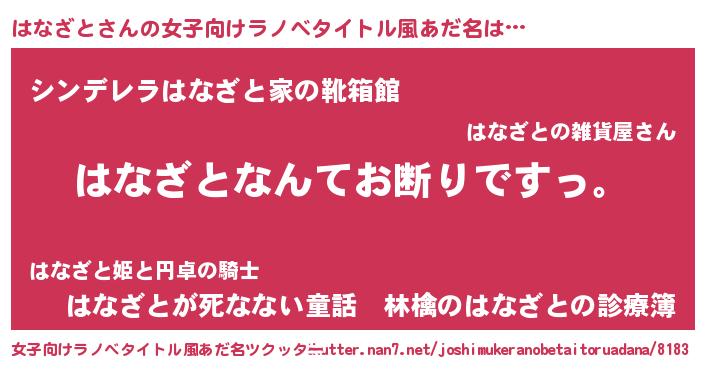 | 意味不明あだ名 | 『自称はなざと』『はなざとフォーエバー』 |