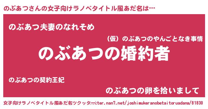 | 胡散臭い通販商品みたいなあだ名 | 『運命の人と巡り会える高級そうな壺…その名も「のぶあつ」』 |