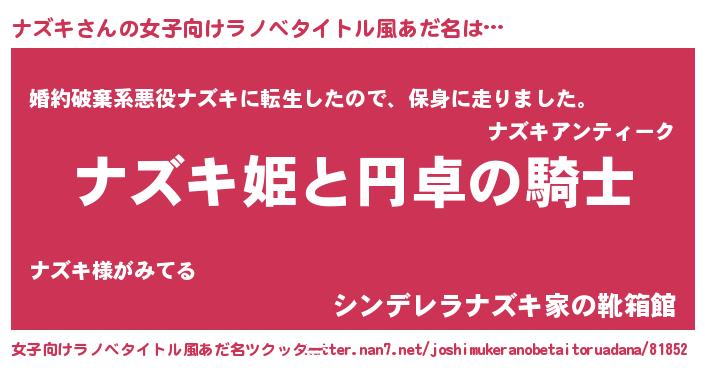 | 男性向けラノベタイトル風あだ名 | 『ナズキアートオンライン』 |