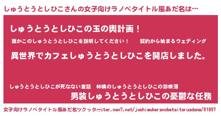 | ヘコむあだ名 | 『しゅうとうとしひこ(爆)』『しゅにー』 |