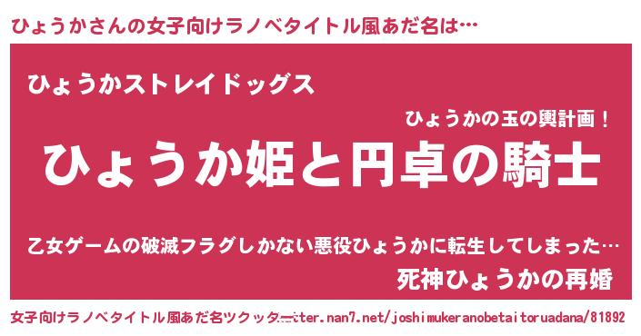 | 胡散臭い通販商品みたいなあだ名 | 『モテモテ間違いなしブレスレット…その名も「ひょうか」』 |