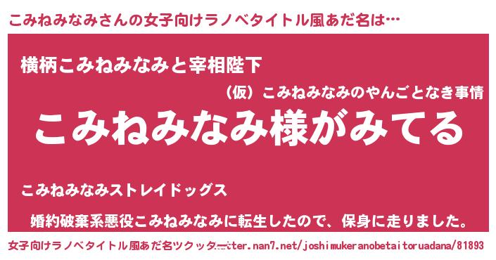 | 意味不明あだ名 | 『とにかく怪しいこみねみなみ』 |
