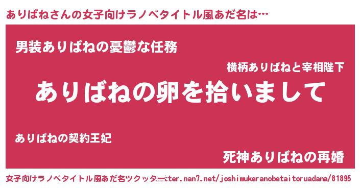 | ヘコむあだ名 | 『ありっちょ』『ありばね(小並感)』 |