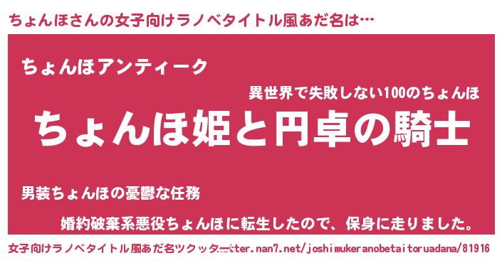 | 胡散臭い通販商品みたいなあだ名 | 『モテモテ間違いなし水晶球…その名も「ちょんほ」』 |