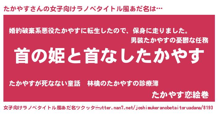 | ヒーロー風カッコイイあだ名 | 『正義の使者たかやす』『仮面タカダー』 |