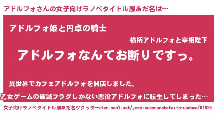 | 男性向けラノベタイトル風あだ名 | 『魔法科高校のアドルフォ』 |