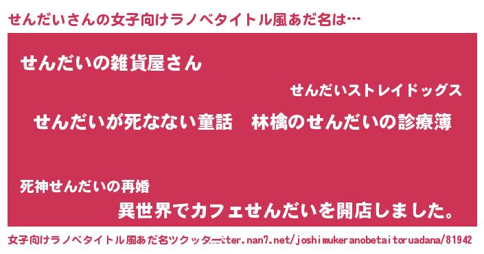 | 男性向けラノベタイトル風あだ名 | 『魔弾の王とせんだい』 |