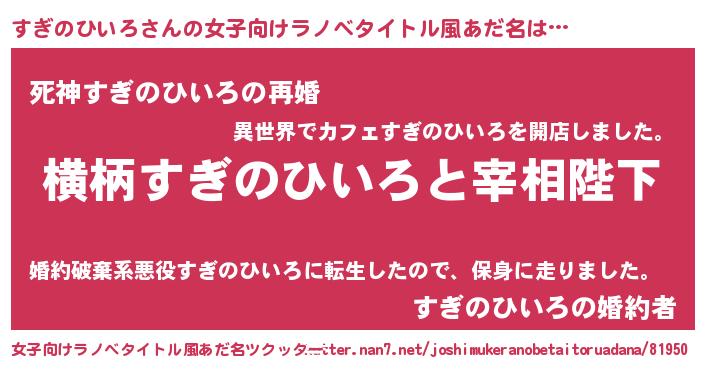 | ヘコむあだ名 | 『酢こんぶ』『すぎのひいろ(笑)』 |