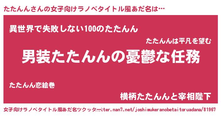 | 男性向けラノベタイトル風あだ名 | 『うちのたたんんが世界を掌握している!』 |