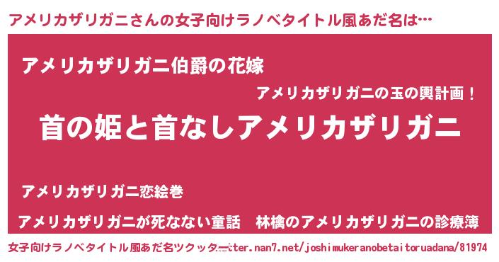 | 男性向けラノベタイトル風あだ名 | 『はたらくアメリカザリガニさま!』 |