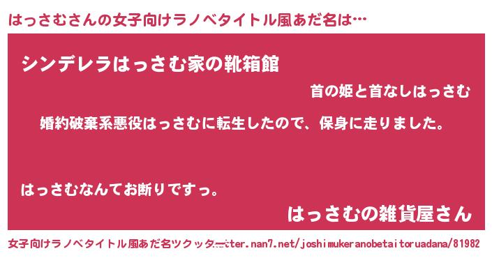 | 胡散臭い通販商品みたいなあだ名 | 『幸せが訪れる高級そうな皿…その名も「はっさむ」』 |