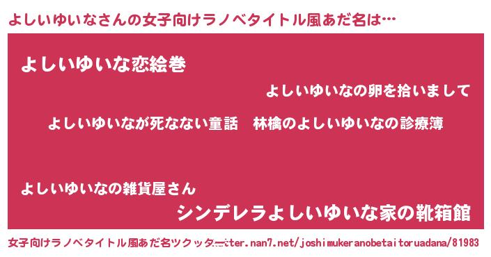 | 意味不明あだ名 | 『住所不定無職よしいゆいな(7歳)』 |
