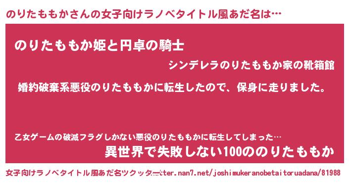 | 男性向けラノベタイトル風あだ名 | 『ノリタモモカスレイヤー』 |