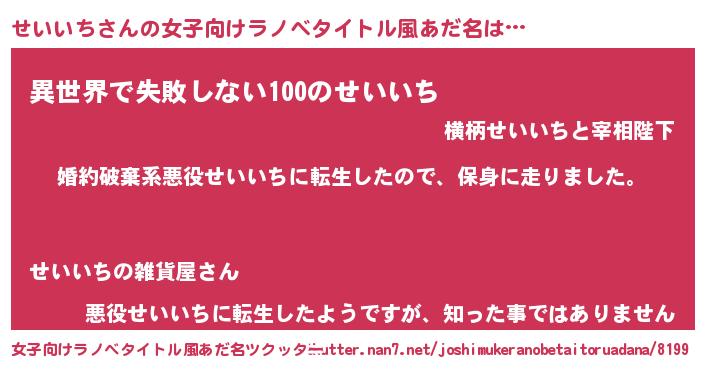 | 男性向けラノベタイトル風あだ名 | 『転生したらせいいちだった件』 |
