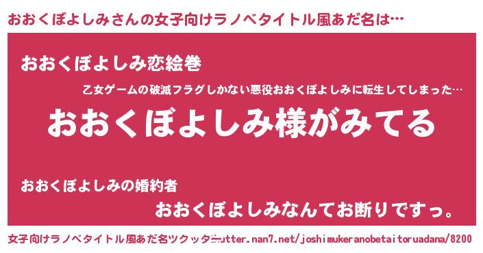 | 男性向けラノベタイトル風あだ名 | 『おおくぼよしみの嫁は女の子じゃないと思った?』 |