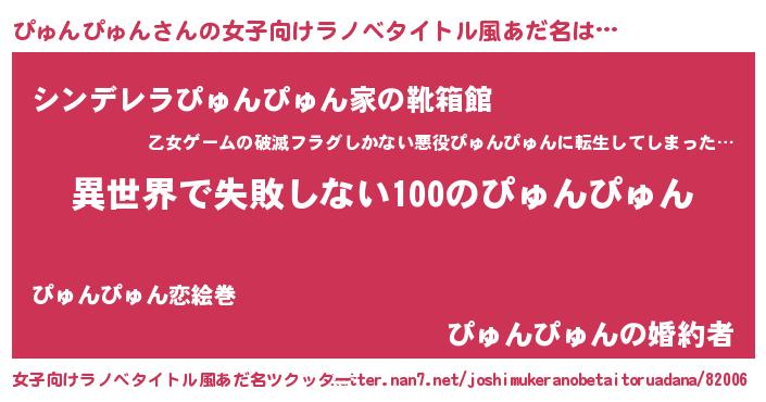| 男性向けラノベタイトル風あだ名 | 『ぴゅんぴゅんという概念が存在しない退屈な世界 』 |