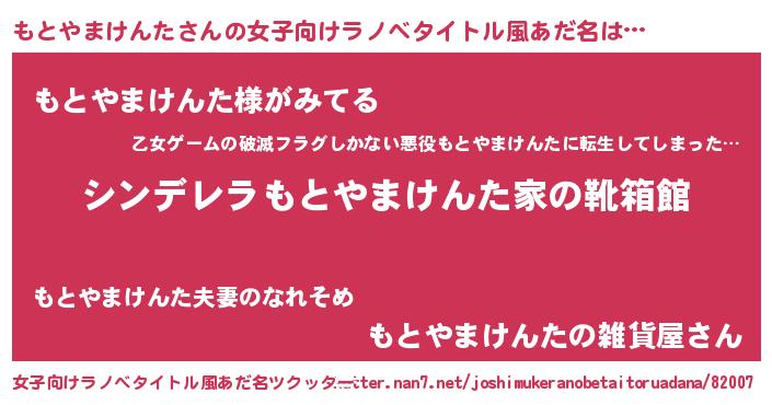 | 胡散臭い通販商品みたいなあだ名 | 『信頼と実績のネックレス…その名も「もとやまけんた」』 |