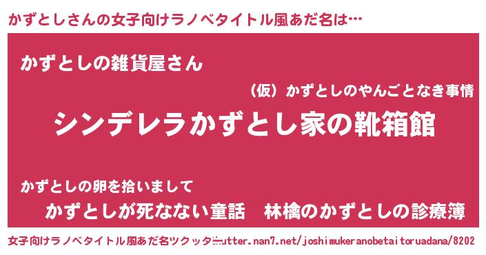 | 男性向けラノベタイトル風あだ名 | 『冴えないかずとしの育てかた』 |