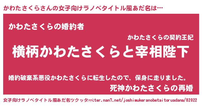 | 胡散臭い通販商品みたいなあだ名 | 『世界が平和になる高級そうな絵画…その名も「かわたさくら」』 |