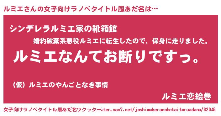 | ヘコむあだ名 | 『ルミふぇ~』『ルミぷりん』 |