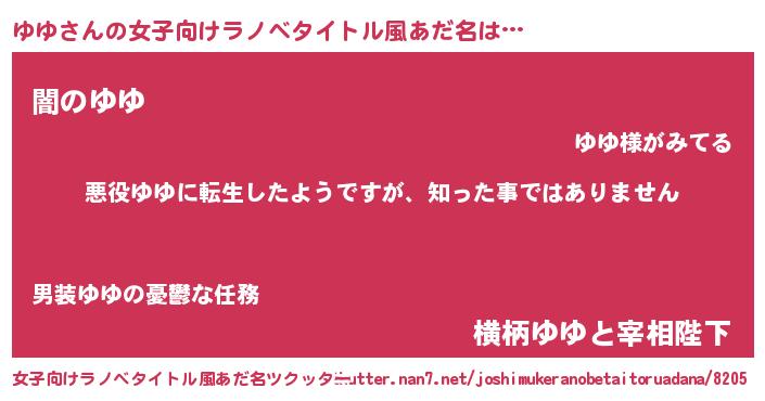 | 男性向けラノベタイトル風あだ名 | 『この素晴らしい世界にゆゆを!』 |