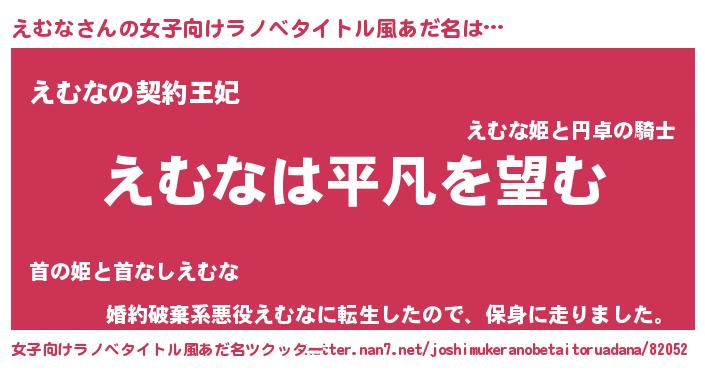 | 男性向けラノベタイトル風あだ名 | 『ダンジョンにえむなを求めるのは間違っているだろうか』 |