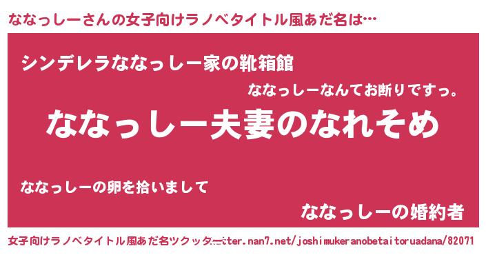 | 男性向けラノベタイトル風あだ名 | 『おまえをオタクにしてやるから、俺をななっしーにしてくれ! 』 |